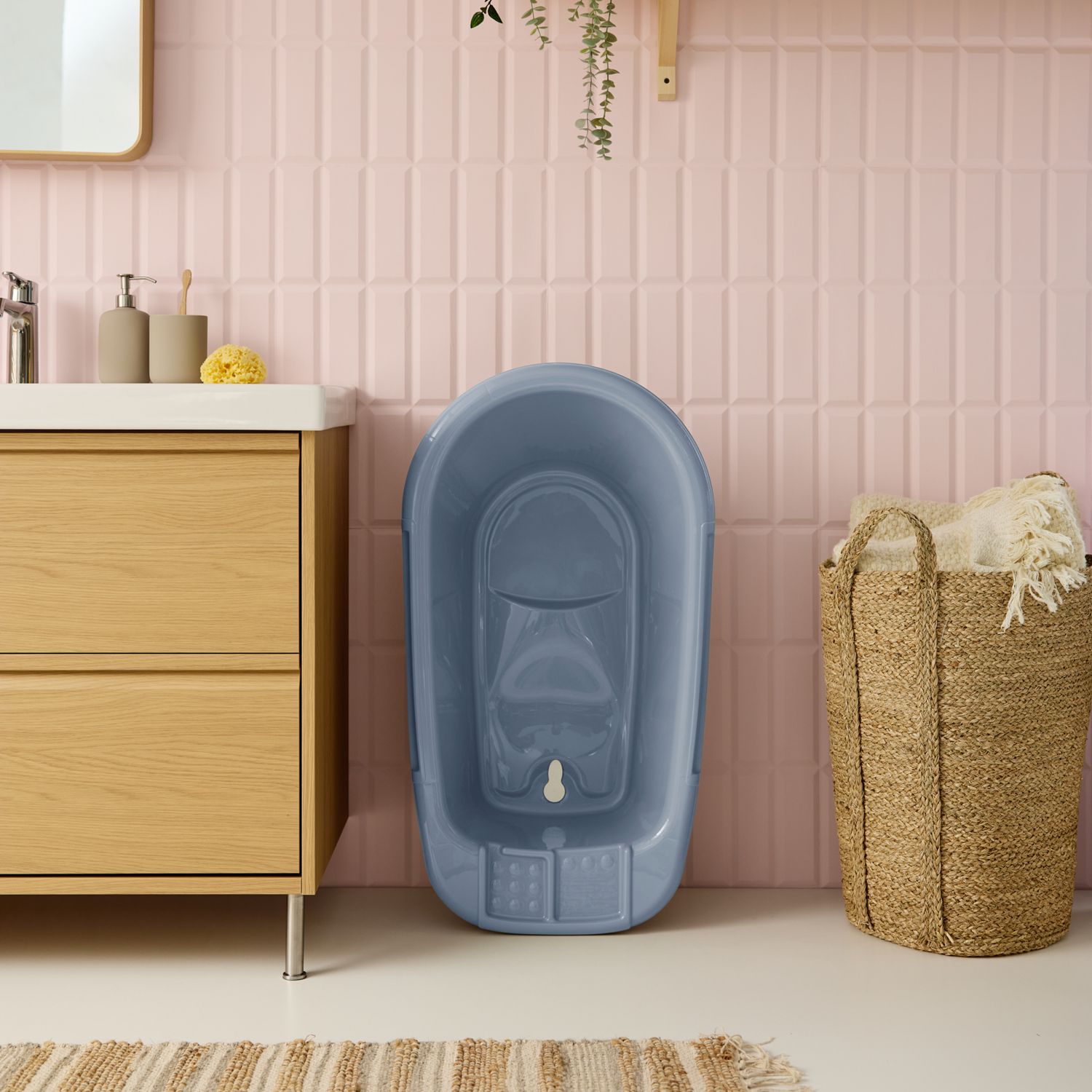 If your child feels at home in the water and is completely happy, then it will be even more fun with our product. With the Bella Bambina bathtub, nothing stands in the way of splashing around and playing. Thanks to its integrated seat, the baby always has a secure hold as soon as it can sit up on its own. Thanks to the practical storage areas, bathing utensils are always within reach.