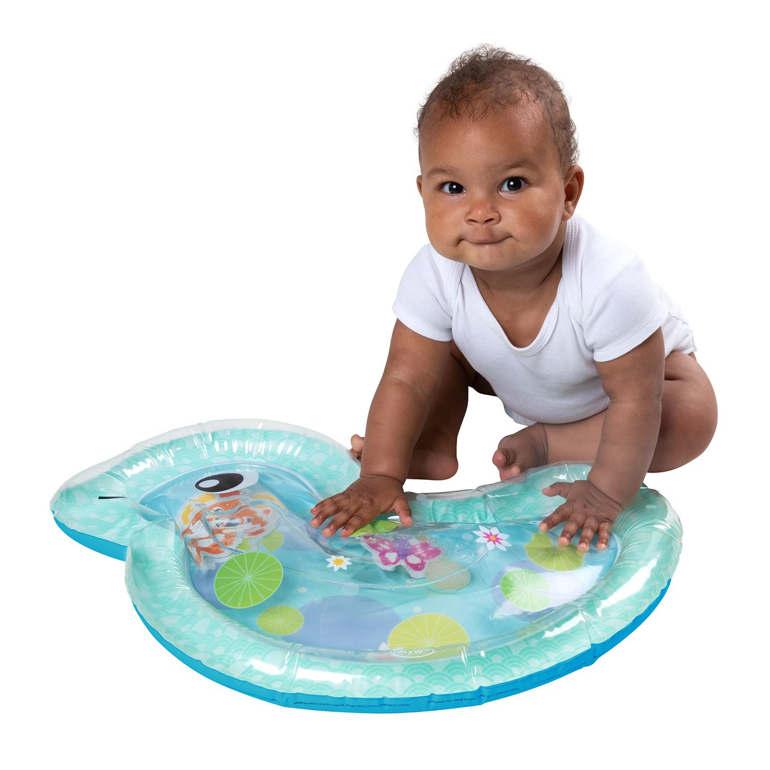 The water play mat offers fascinating fun for babies from the very beginning while also supporting their development. Whether in the high chair or on the floor – the versatile mat provides sensory discoveries everywhere. By gently pressing on the mat, colorful pond characters move inside the water-filled area, stimulating visual perception and sparking wonder. The tactile experience promotes hand-eye coordination and fine motor skills, inspiring curiosity and joy. The mat is easy to fill and always ready for use – for safe and hassle-free everyday fun. A wonderful experience for little exploring hands that combines learning, feeling, and play in one.