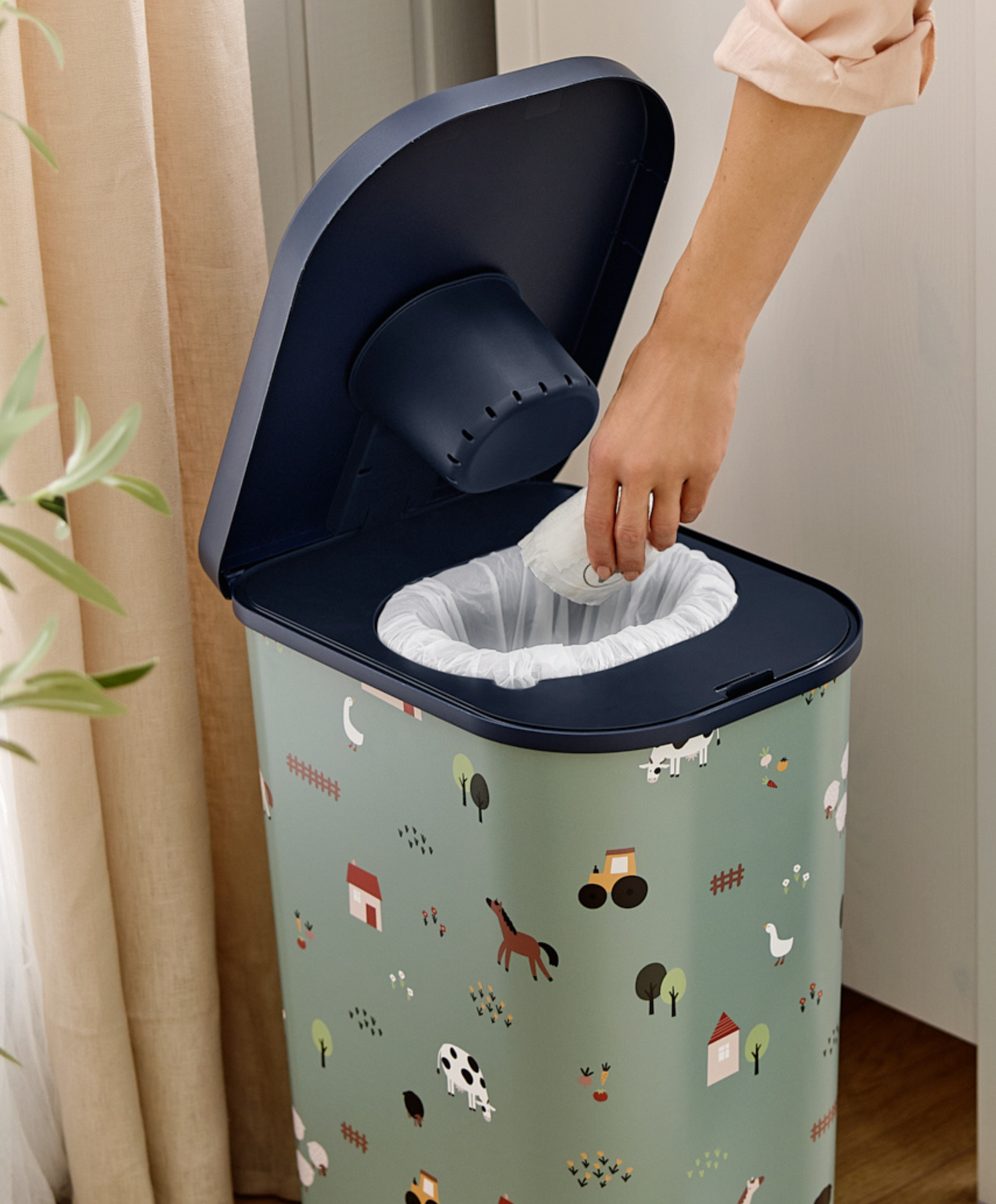 Ob minimalistisch oder verspielt – der Windeleimer passt in jedes Zuhause. Erhältlich in ansprechenden Motiven.
