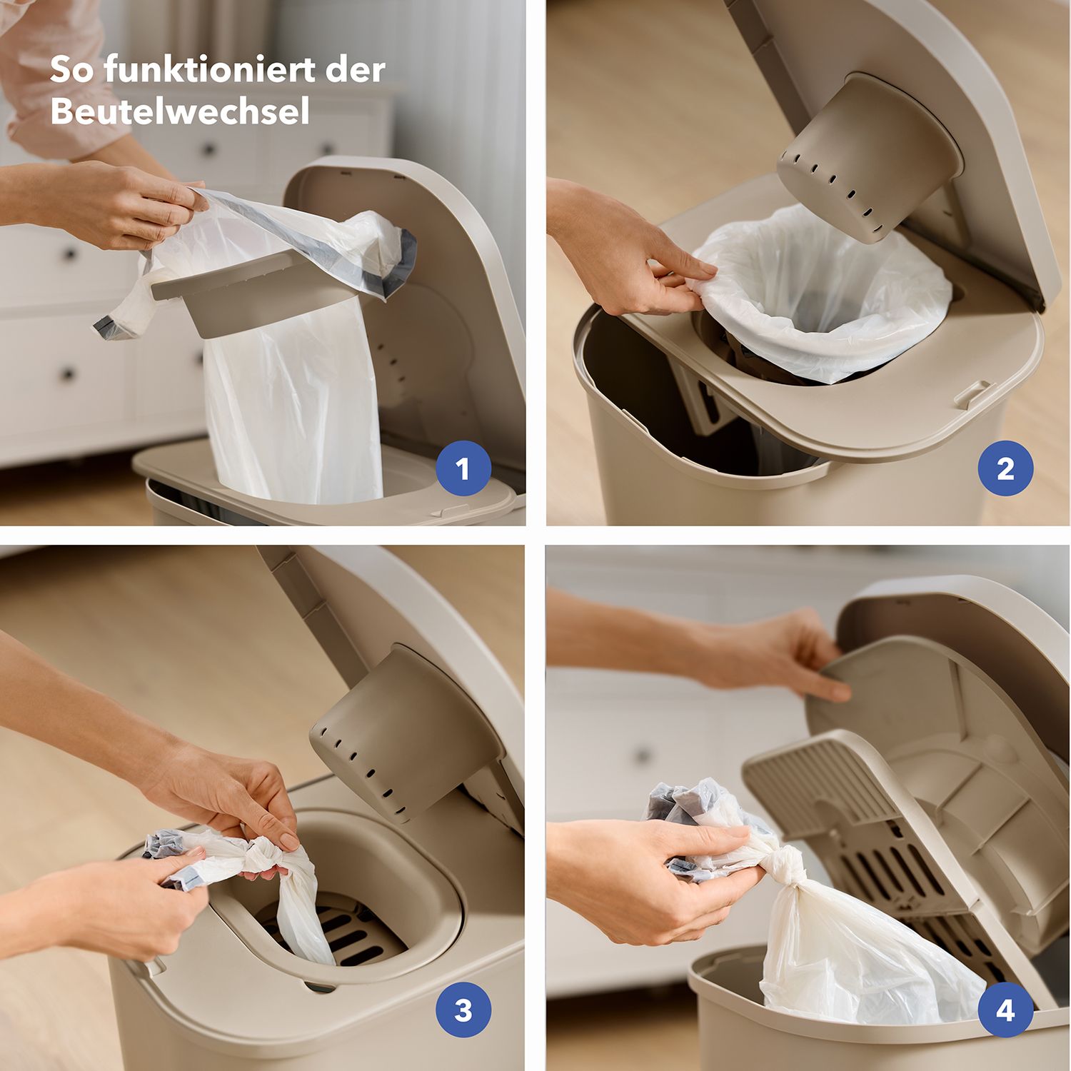 - Optimale Passform: Die Beutelgröße nutzt das Eimervolumen effizient – für ca. 30–35 Windeln pro Beutel (je nach Windelgröße).