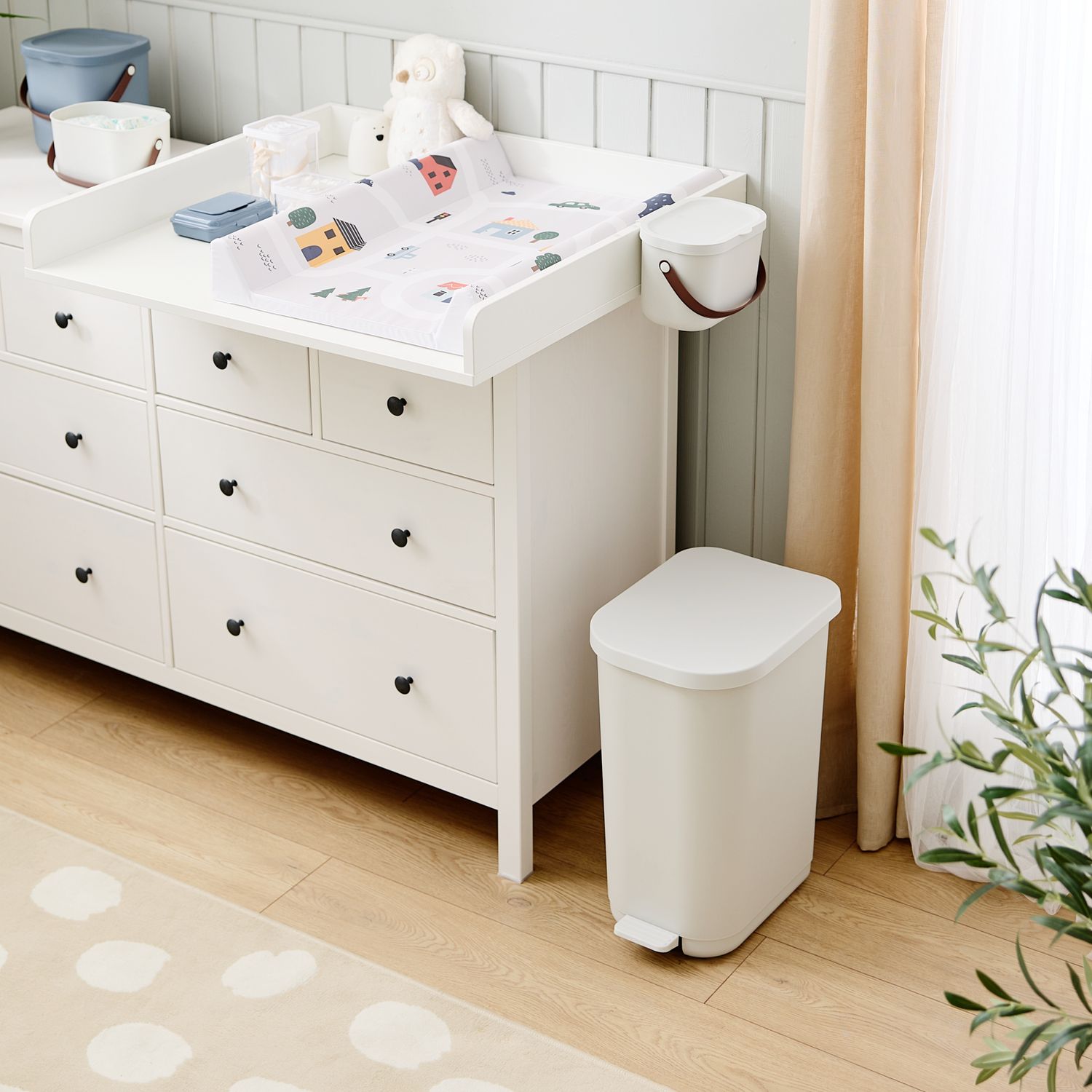 - Nach der Wickelzeit als stilvoller Mülleimer weiterverwendbar